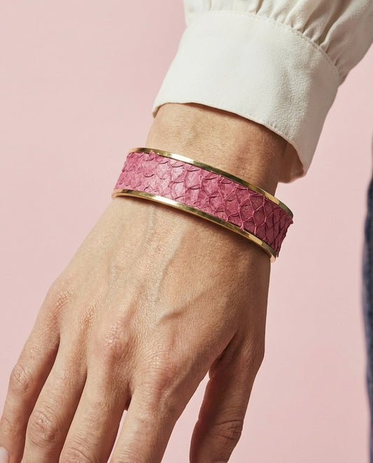 Manchette Calypso Fuchsia â cuir marin & acier inoxydable