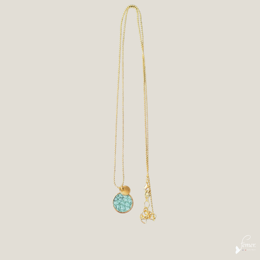 Sautoir modĂšle Salie-Sud en cuir marin Vert Algue â MĂ©daillon 20 mm