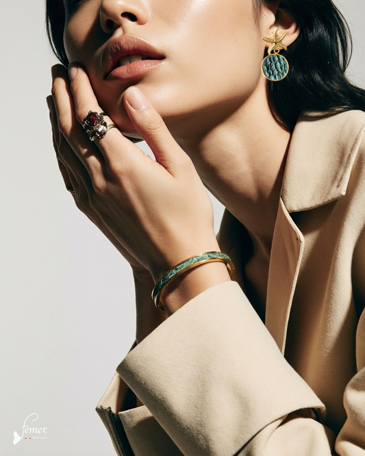 - Bijoux en cuir marin tanné végétalement dans notre atelier de La Teste-de-Buch, fabrication artisanale française.