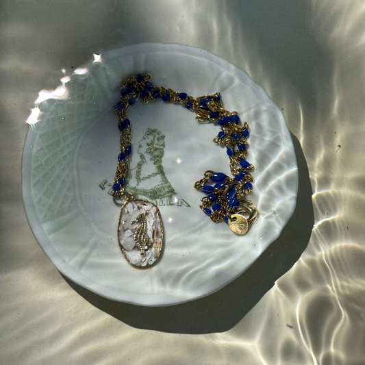 Collier Hippocampe en Ostréalithe® – Nacre recyclée & chaîne inox perles colorées