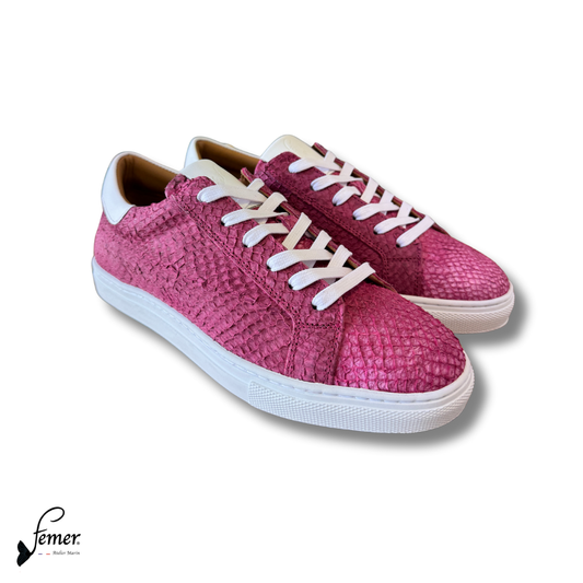 Fémer shoes- Basket en cuir de saumon rose fuchsia