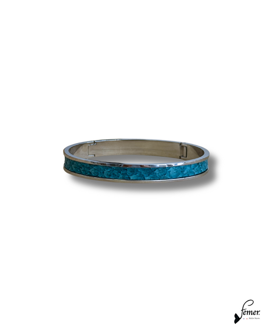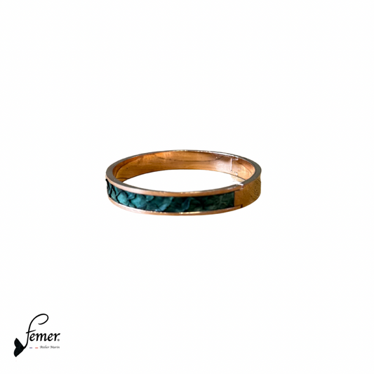 Manchette Calypso – cuir marin turquoise & inox doré
