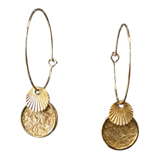 Boucles d'oreilles Ostréalithe (recyclage de coquilles d'Huîtres) sur support inox doré à l'or fin