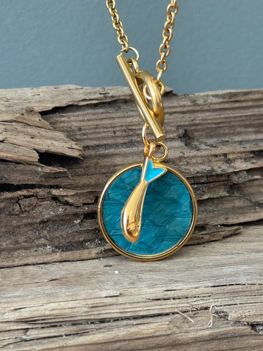 Collier Modèle Sardine- Cuir marin & acier doré