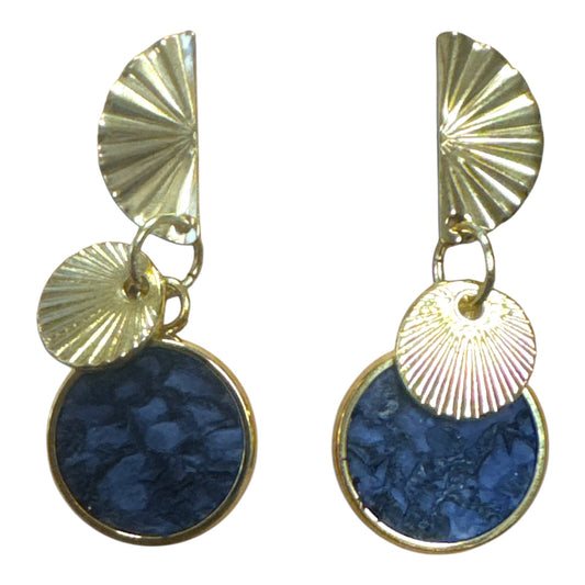 Boucles d'oreilles coquillage bleu paon- cuir marin, laiton doré et acétate