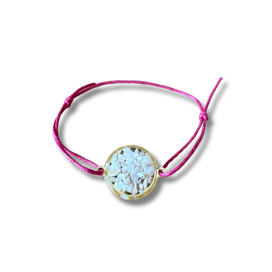 Bracelet "Bulle" Inox, Ostréalithe & coton ciré- Bijou du Bassin d'Arcachon