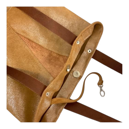 Manchette Calypso – cuir de saumon couleur sable & inox doré