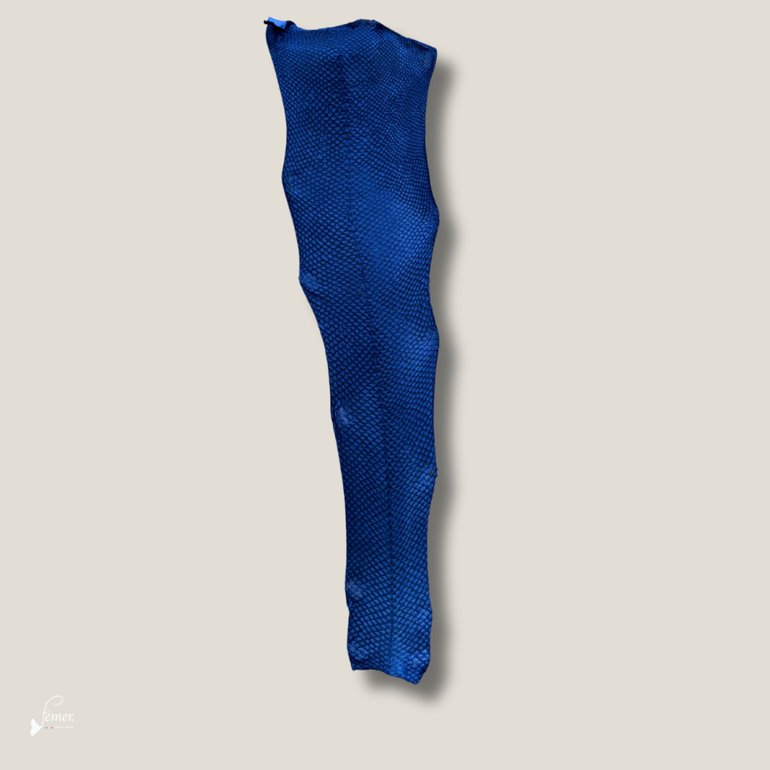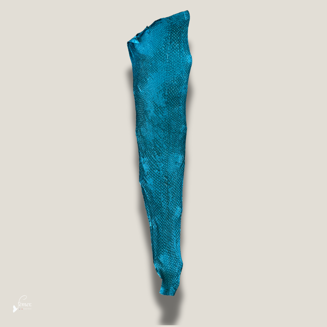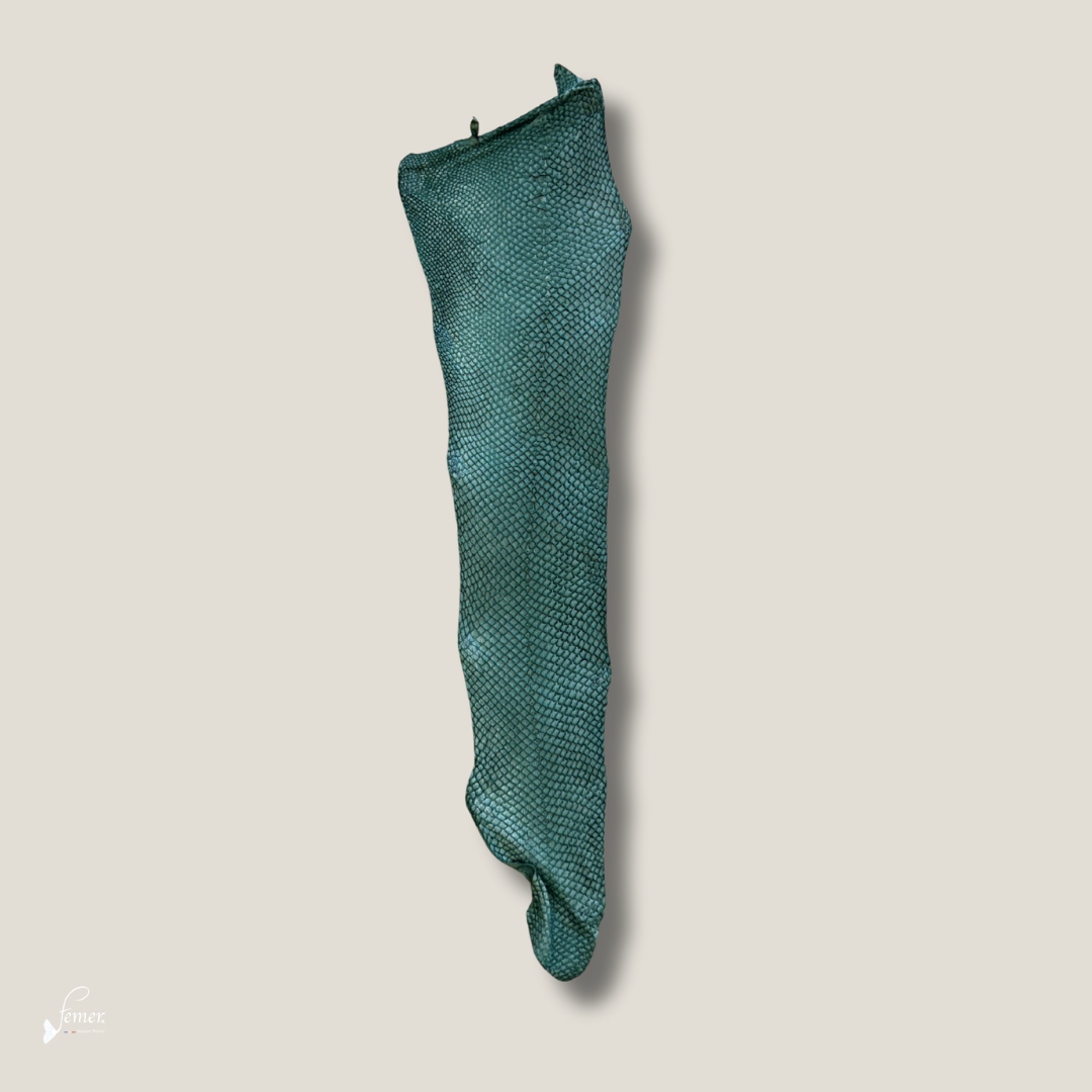 Découvrez notre cuir marin haut de gamme, issu de peaux de saumon upcyclées et tannées végétalement au mimosa, sans chrome ni produits toxiques.