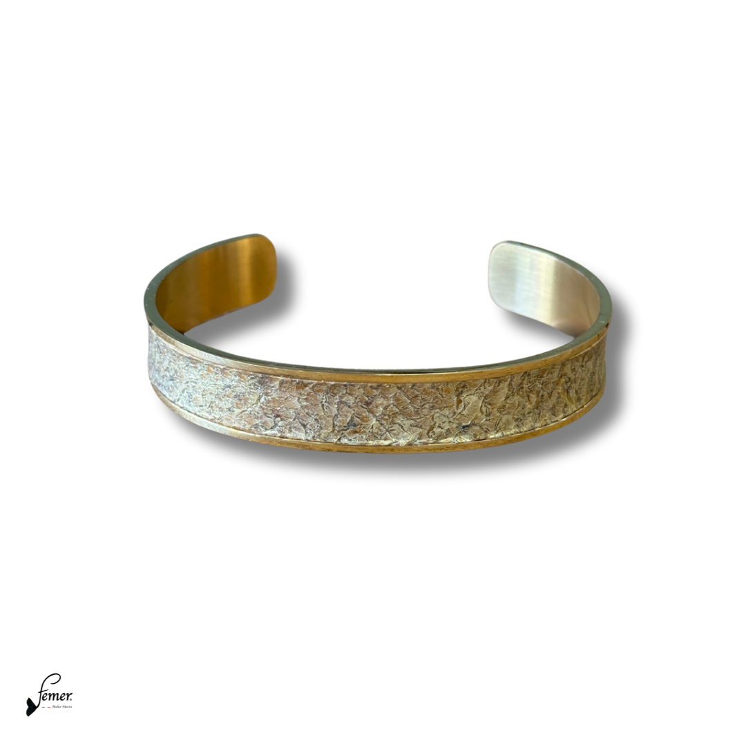 Chaque manchette est issue de notre démarche d’upcycling : nous récupérons les peaux de truite et saumon destinées à être jetées et leur donnons une seconde vie grâce à un savoir-faire rare de tannage végétal.